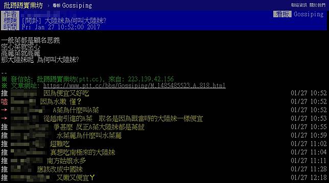 不過也有網友看了之後,開玩笑地說會叫大陸妹「是因為嫩吧」,更有人打趣地說「有一次我跟老闆點大陸妹,結果就被帶到小房間去…」,被網友們大推「神回」!