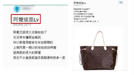 斗大標題寫著,阿嬤這是LV,還附上包包照片,PO文的人說,阿嬤居然把他送的LV包包,拿來裝了好幾條「裸身」虱目魚,還稱讚都不會漏水,只是重了點。網友調侃,在阿嬤心中,LV跟塑膠袋一樣,還說阿嬤逛市場像走伸展台,連魚都增值了。
