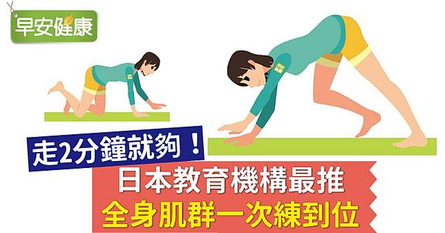 - 一開始練習時可能會30秒到1分鐘就喘不過氣來,不過習慣之後可以與家中小朋友一起進行,每天在地板上來回爬動2分鐘,即可達到充足的運動量。