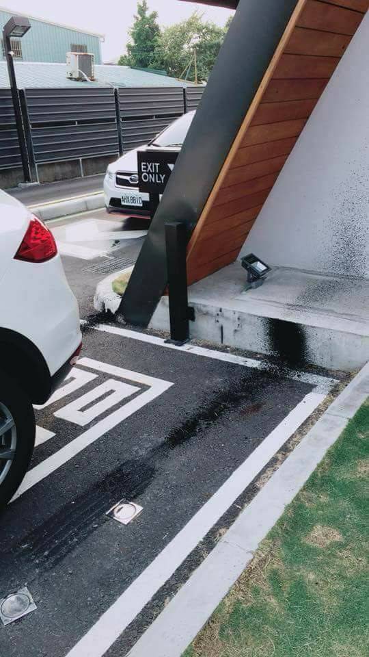 記者致電星巴克民雄店,接電話的店員說店長不在,僅低調證實今天確實有車友在此處造成污損,還未清理,也不知能否清乾淨。