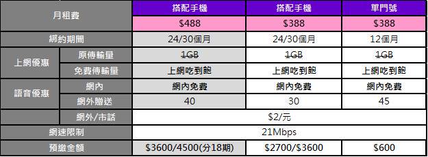 【388購機方案】只要月繳388元,即可享4G入門終身上網吃到飽,多款熱銷手機再降價,0元就可輕鬆帶走,並享網內互打免費、網外/市話每分鐘2元最低語音優惠(388購機優惠內容解析詳見這裡)。