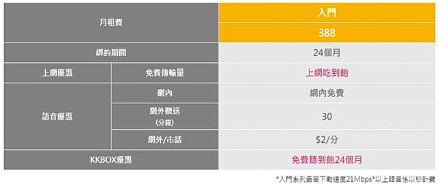 另外,台灣之星網路門市針對限年滿12~25歲的學生推出388限速21Mbps吃到飽學生方案,綁約24個月可加送KKBOX兩年聽到飽。