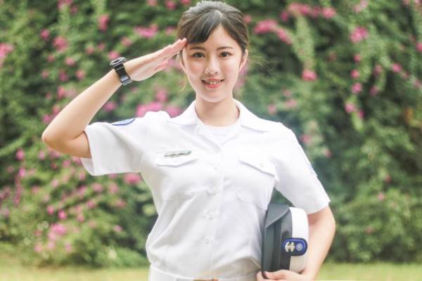 ▼黃靜昀穿著軍便服給人一種鄰家女孩的印象。圖/翻攝臉書