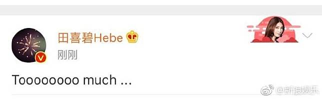 田馥甄似乎真的被粉絲不理智的行為逼出火來,在微博上發文:「Toooooooo much…」,雖然沒多久的時間就自行刪除,但還是被眼明手快的網友截圖。