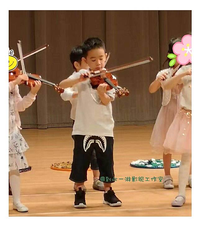 Jasper因為和爸爸陳小春參加陸綜《爸爸去哪兒》爆紅,不過在節目結束後,應采兒曾表示要讓兒子「息影」,專心在學業上,因此,不少網友都轉而關注夫妻倆的社群動態,15日陳小春的工作室微博曝光了Jasper在畢業典禮上的表演照,只見Jasper穿著白色上衣,站在同排中央,帥氣地拉著小提琴,看起來架式十足,不只如此,在跳舞環節結尾時,Jasper蹲在第一排最右邊,擺出動感超人姿勢,臉上則露出招牌笑容,超萌模樣秒融化粉絲的心,工作室也在貼文中誇讚「舞台上的Jasper有沒有超像老爸」。