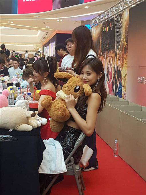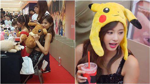 除了修過圖的照片外,有人也貼出零濾鏡的現場照,只見周子瑜親切地向鏡頭揮手,並抱著在寶可夢裡與她撞臉的伊布玩偶,也戴著皮卡丘的小帽帽,十分可愛,粉絲在看完照片後紛紛表示:「子瑜妹妹你好可愛喔」、「那個腰,羨慕」、「伊布好好哦」。