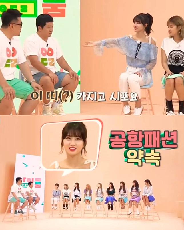 其實這套衣服是MOMO跟節目組「要」來的XDD之前TWICE出演《Idol Room》時,MOMO表示很想要MC鄭亨敦和Defconn身上穿的T恤,並約定會把衣服當做機場時尚來穿,這次就是在兌現承諾啦~