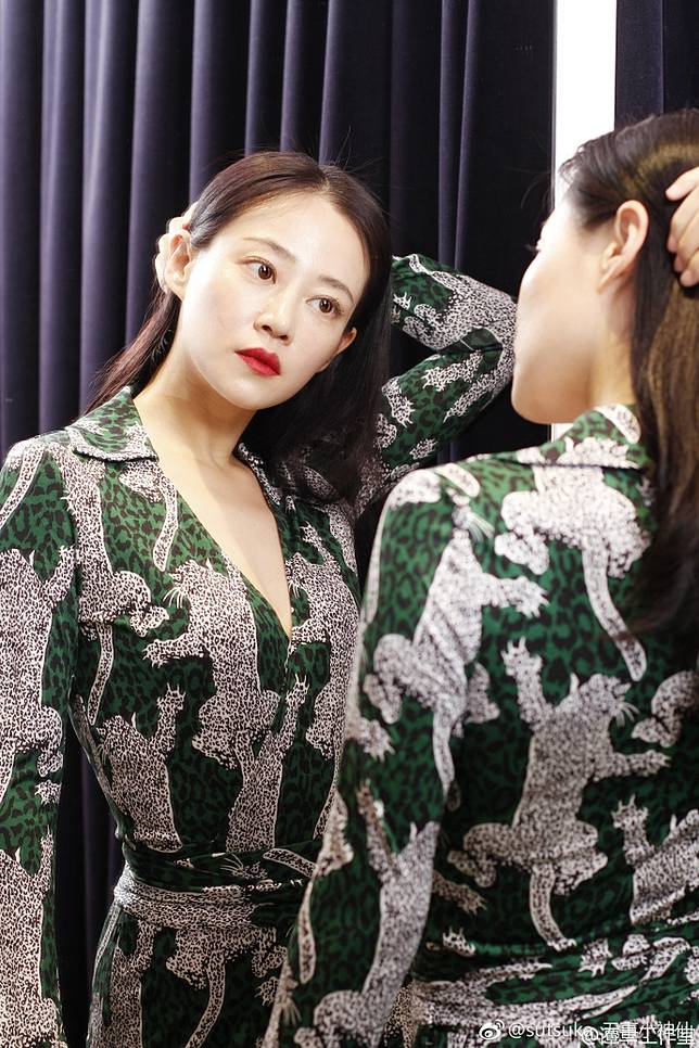 不過,離開了儲秀宮,抹去濃妝和惡婦設定的譚卓,清新脫俗又超有氣質!這張她穿上Prada洋裝,簡單俐落的寬鬆剪裁連身洋裝搭配上黑色腰帶,露出鎖骨肩膀的領口設計突顯了譚卓的女人味,顯得優雅大方。